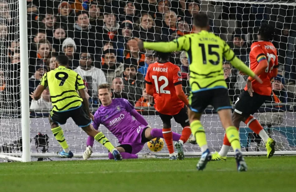 أفلت نادي أرسنال متصدر الدوري الإنجليزي لكرة القدم من السقوط في فخ التعادل على ملعب مضيفه لوتون تاون في افتتاح الجولة الخامسة عشرة من البريميرلييج، وذلك عندما سجل لاعب وسطه الجديد ديكلان رايس هدف الفوز برأسية رائعة في الدقيقة السابعة من الوقت المحتسب بدلا من الضائع لنتهي اللقاء لصالح المدفعجية 4-3.