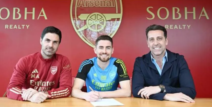جورجينيو وأرتيتا أثناء توقيع العقود الجديدة