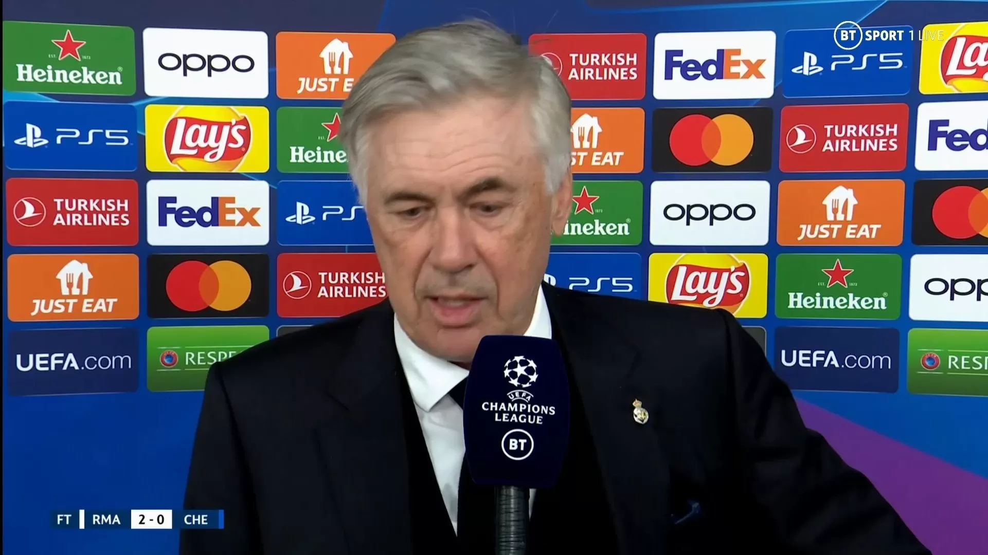 تحدث الإيطالي كارلو أنشيلوتي، عقب فوز فريقه الثمين أمام تشيلسي، بهدفين دون رد، ضمن منافسات دوري أبطال أوروبا، موسم 2022-2023.