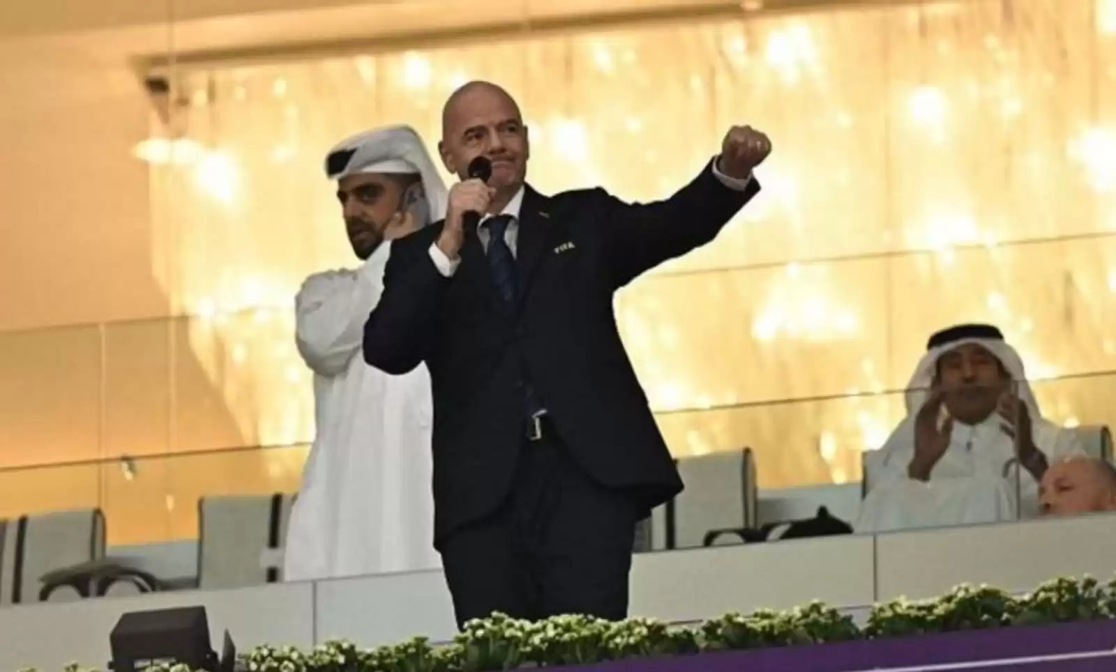 حرص جياني إنفانتينو رئيس الاتحاد الدولي لكرة القدم، الفيفا”، على الترحيب بالجميع قبل إنطلاق بطولة كاس العالم، في المباراة الافتتاحية من المونديال بين قطر والإكوادور.