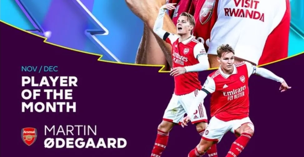 فاز النرويجي مارتن أوديجارد، نجم فريق آرسنال بجائزة لاعب الشهر، عن نوفمبر وديسمبر، فى مسابقة الدوري الإنجليزي الممتاز.