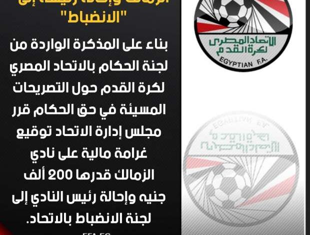 اتحاد الكرة يغرم الزمالك 200 ألف جنيه بسبب السباب الجماعي لجماهيره في لقاء سموحة