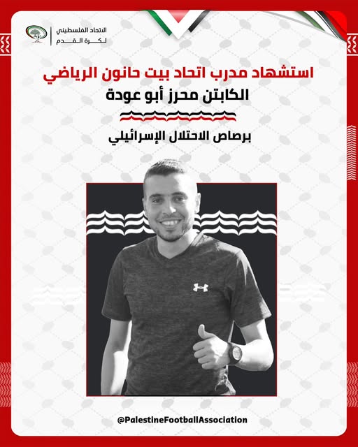 أعلن الاتحاد الفلسطيني لكرة القدم عن استشهاد محرز أبو عودة، مدرب فريق اتحاد بيت حانون الرياضي، برصاص قوات الاحتلال الإسرائيلي، أثناء انتظاره الحصول على مساعدات إنسانية في قطاع غزة.