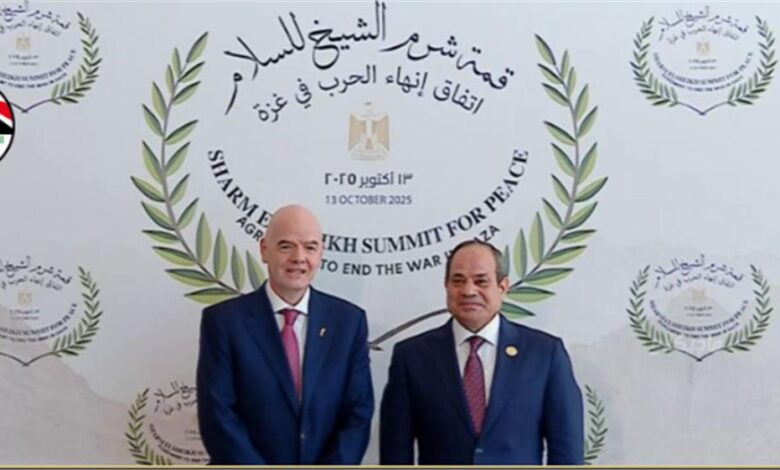 الرئيس السيسي يستقبل إنفانتينو في شرم الشيخ على هامش قمة السلام