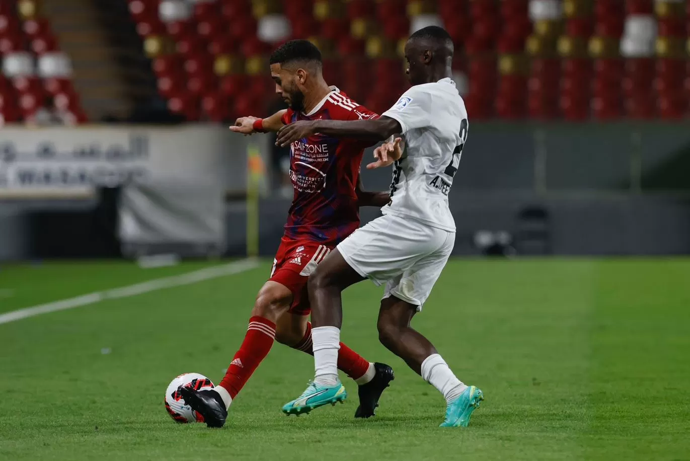 وخلال اللقاء، اعتمد الفريقان على سلاح الهجوم منذ صافرة البداية، بحثاً عن هدف مبكر، مع تماسك دفاعي لحماية المرمى، ما أدى إلى قلة صناعة الفرص، باستثناء فرصة برونو أوليفيرا مهاجم الجزيرة من هجمة سريعة، تألق عادل الحوسني في التعامل معها، وأخرى مماثلة لمصلحة الشارقة، من لوان بيريرا، لكنها ذهبت خارج الخشبات الثلاث.