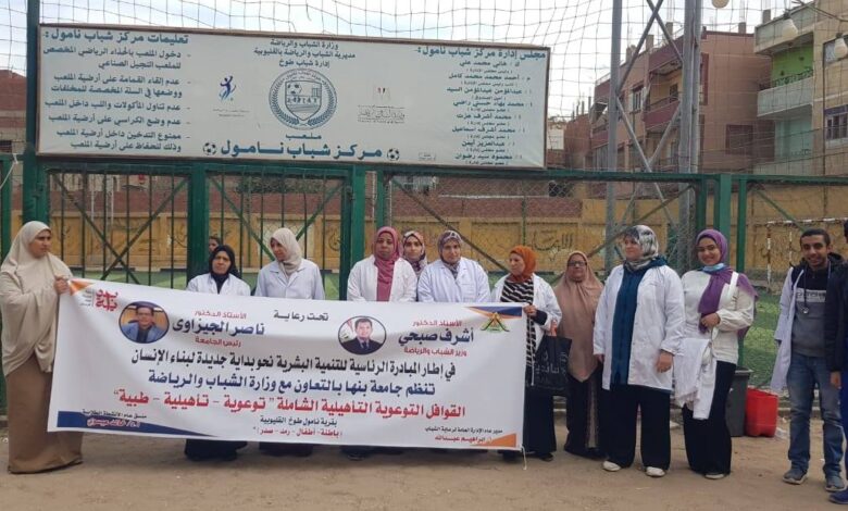 القاهرة في 16 أبريل /أ ش أ/ أطلقت وزارة الشباب والرياضة – الإدارة المركزية لتنمية الشباب ، أولي القواقل التوعوية التأهيلية الشاملة ، بالتعاون مع الجامعات المصرية، القوافل التوعوية التأهيلية الشاملة والتي تضم تخصصات " توعية صحية – تأهلية – طب بشري "،