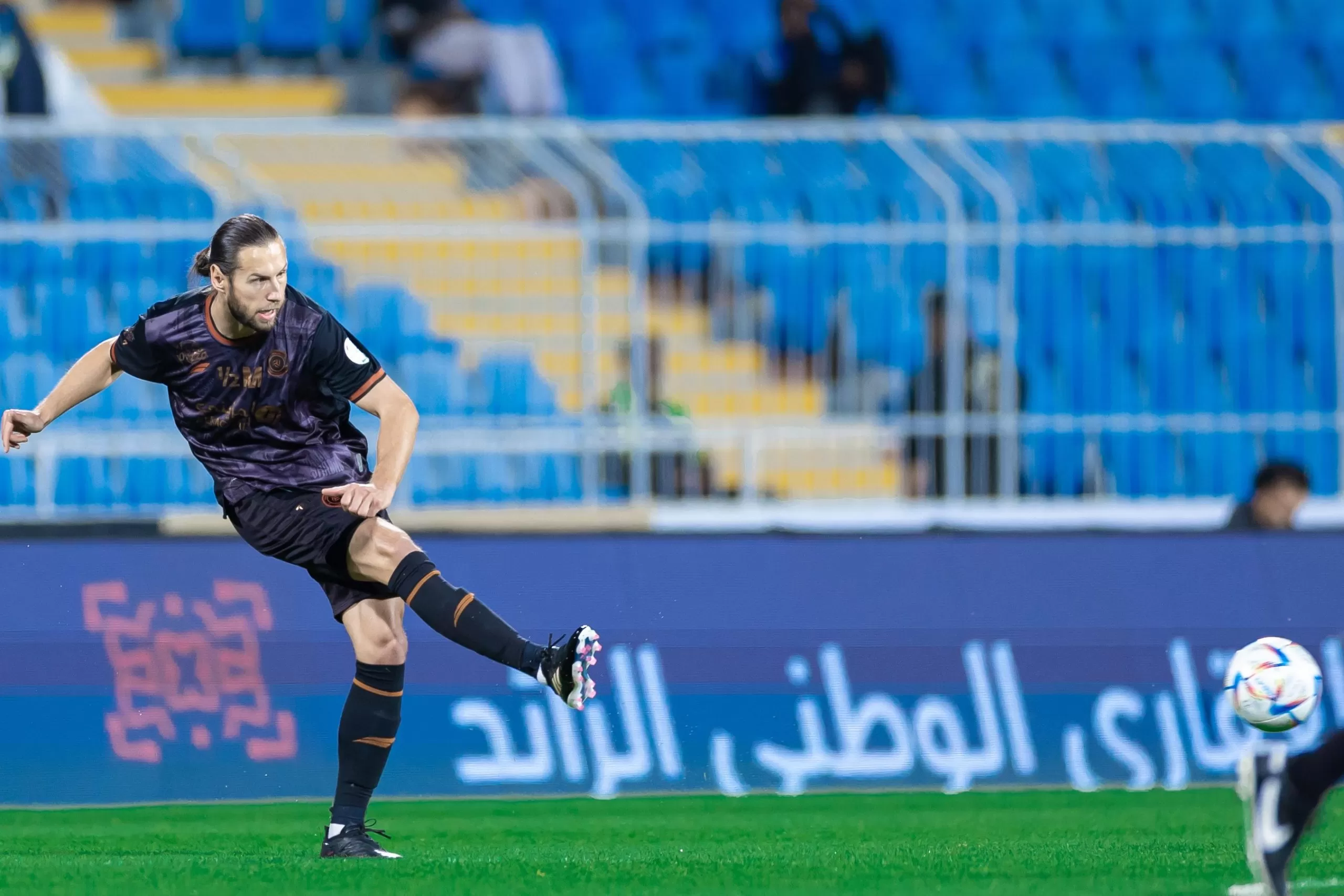 أنطوني نواكايمي لاعب الفيحاء الهدف الثاني في الدقيقة 59.