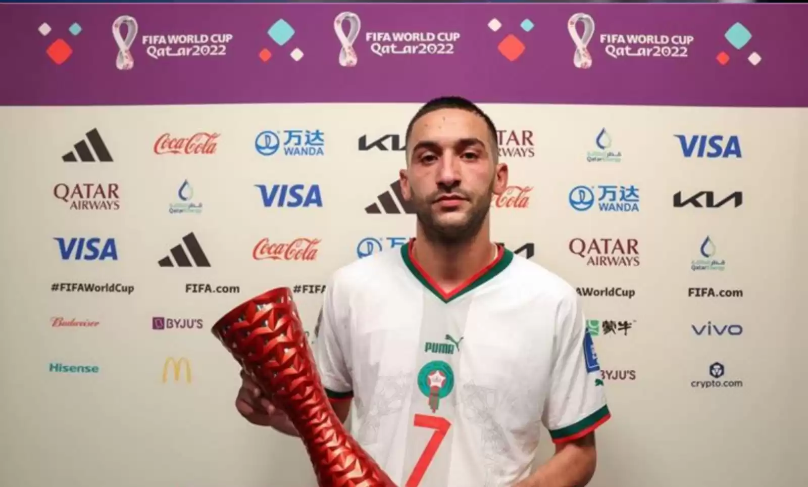 حصل نجم نادي تشيلسي الإنجليزي، المغربي الدولي حكيم زياش، على جائزة أفضل لاعب في مباراة أسود الأطلس أمام بلجيكا، في بطولة كأس العالم قطر 2022.