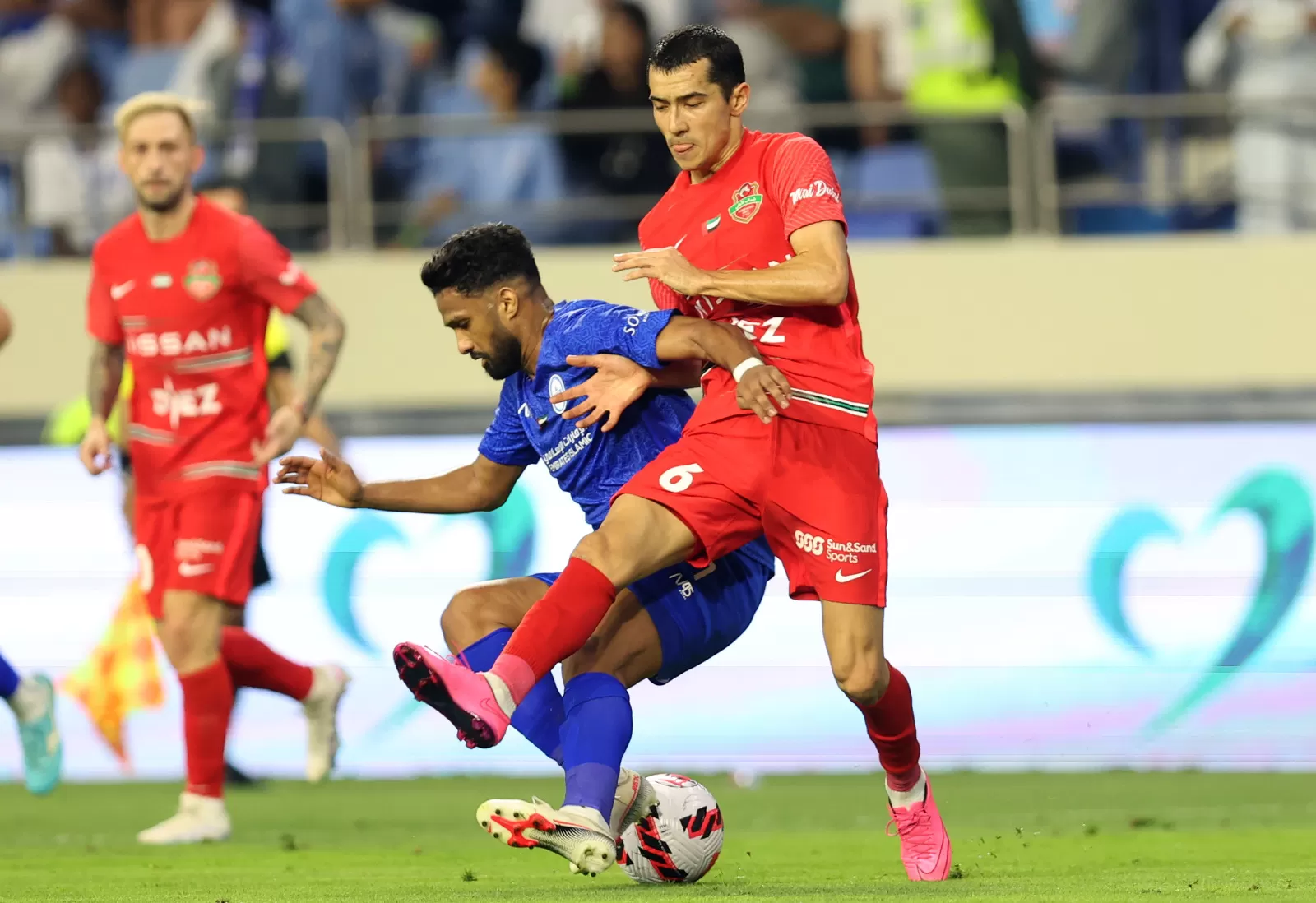 واستمر اللعب سجالاً بين الفريقين على مدار الشوط الأول مع أفضلية لشباب الأهلي الذي أضاع ما لا يقل عن ثلاث فرص سانحة للتسجيل من أقدام عمر خريبين ويوري سيزار وكارتابيا.