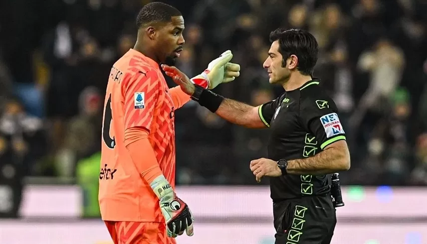 اجبرت هتافات عنصرية صدرت من جماهير الفريق المضيف ضد مايك ماينان حارس مرمى الفريق اللومباردي في إيقاف مباراة ميلان ومضيفه أودينيزي مؤقتا.