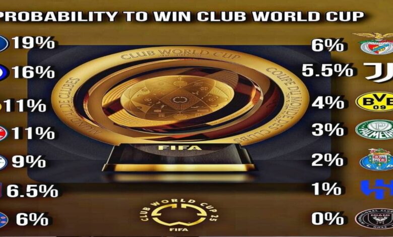 نشر الاتحاد الدولي لكرة القدم “فيفا” جدولاً يوضح احتمالية تتويج كل فريق بلقب كأس العالم للأندية، وذلك ضمن إحصائية مثيرة للاهتمام ضمت 14 فريقاً.