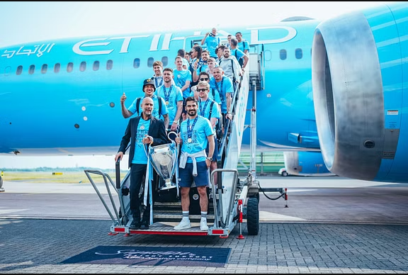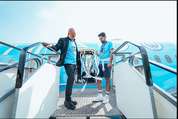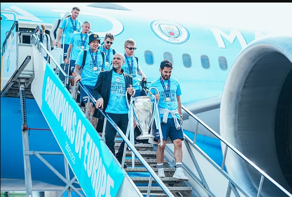 في أعقاب الفوز بدوري أبطال أوروبا للمرة الأولى في تاريخ النادي، عادت بعثة مانشستر سيتي إلى الأراضي الإنجليزية، متوجة بالكأس، بعد هزيمة انتر ميلان 1-0 في النهائي الذي اقيم اسم في اسطنبول بتركيا.