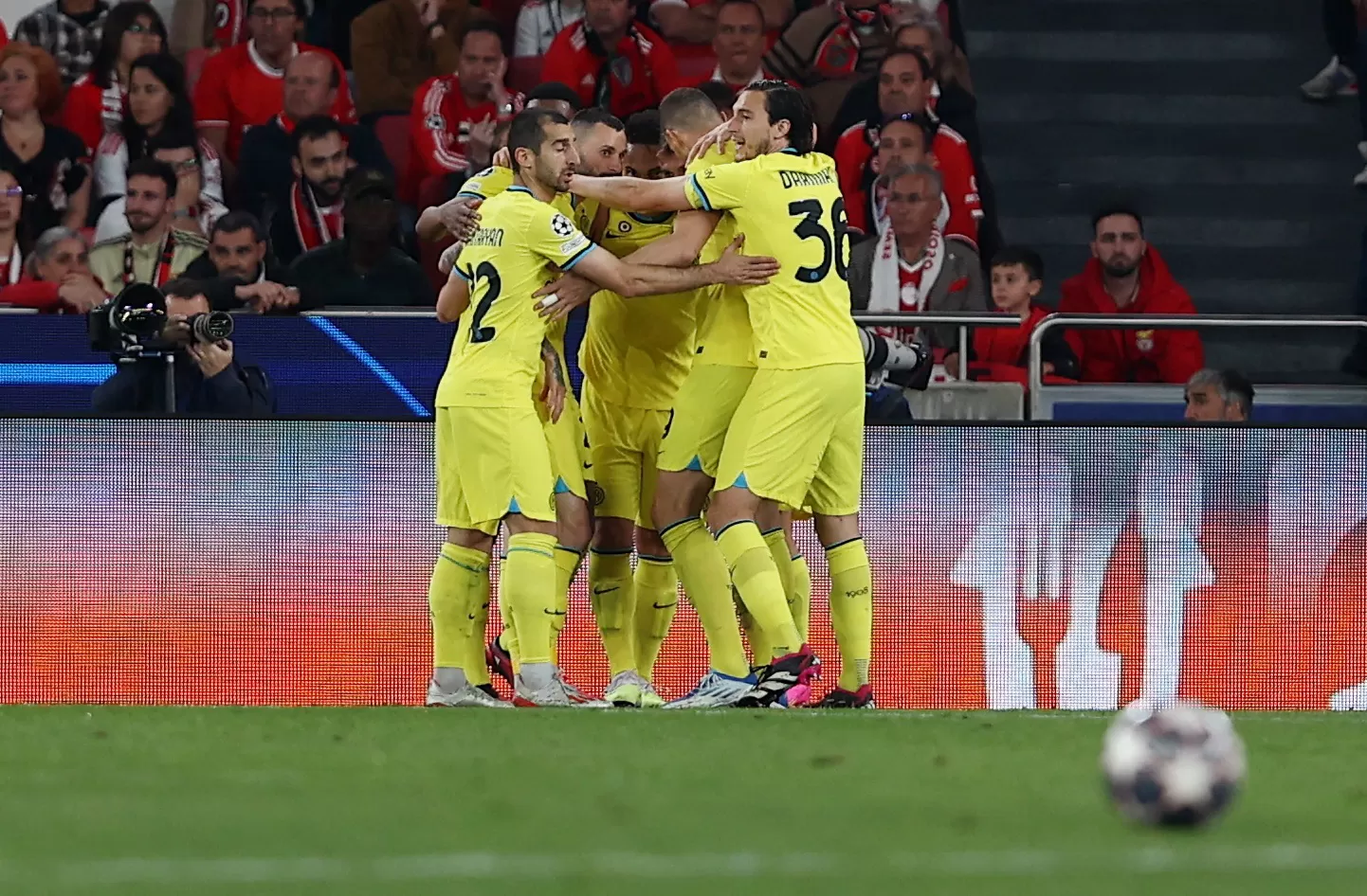 احتفال لاعبي الإنتر بالتسجيل أمام بنفيكا