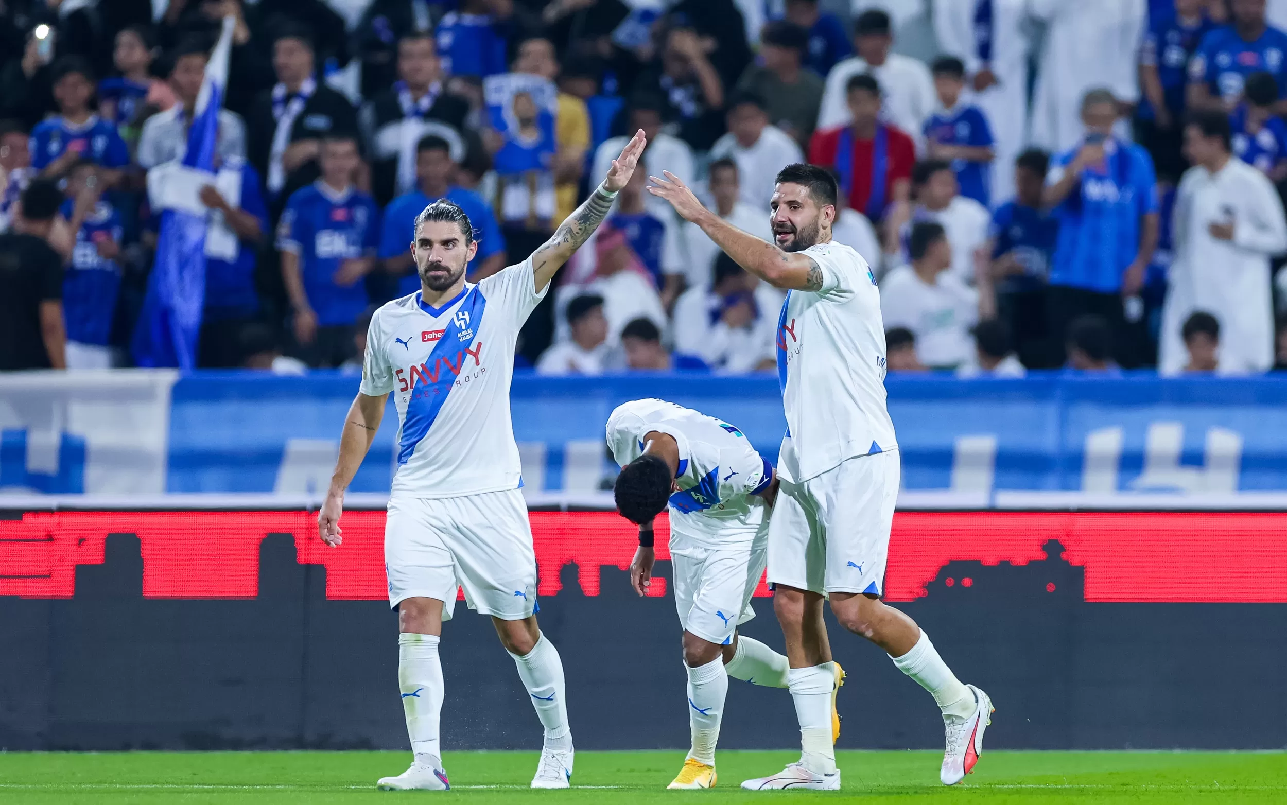 وسجل الصربي ميتروفيتش في ظهوره الأول بالقميص الأزرق، كما هو حال المغربي ياسين بونو حارس المرمى، بعد انتقالهما إلى صفوف الهلال قادمين من فولهام الإنجليزي وإشبيلية الإسباني على التوالي.