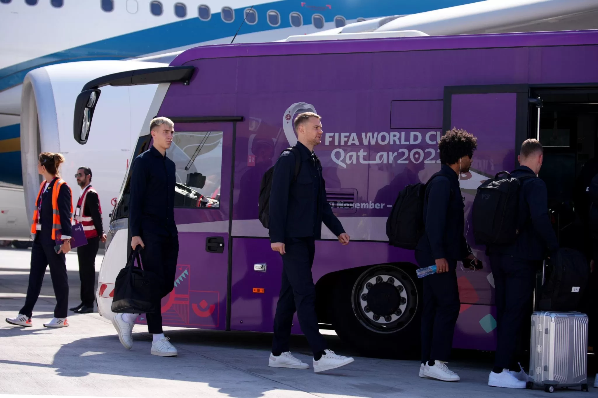 وصلت بعثة المنتخب الألماني، إلى مطار حمد الدولي بالعاصمة القطرية الدوحة، استعدادًا للمشاركة في نهائيات كأس العالم 2022.
