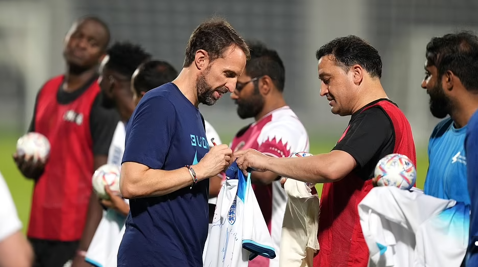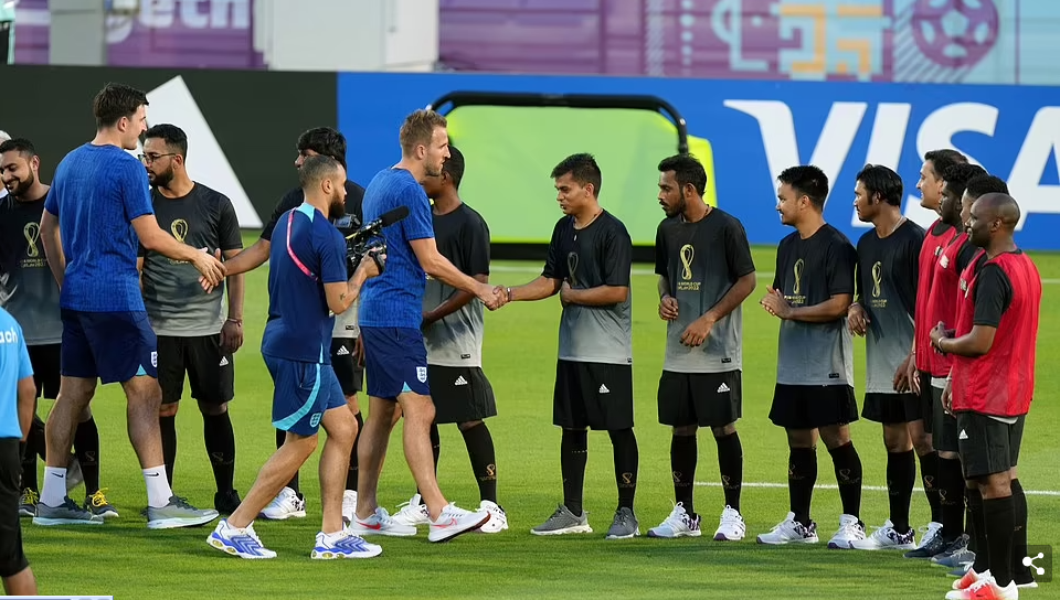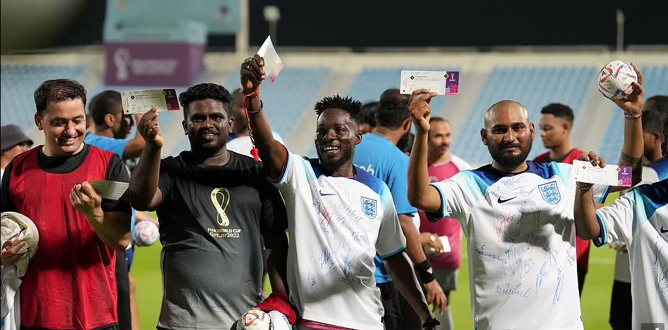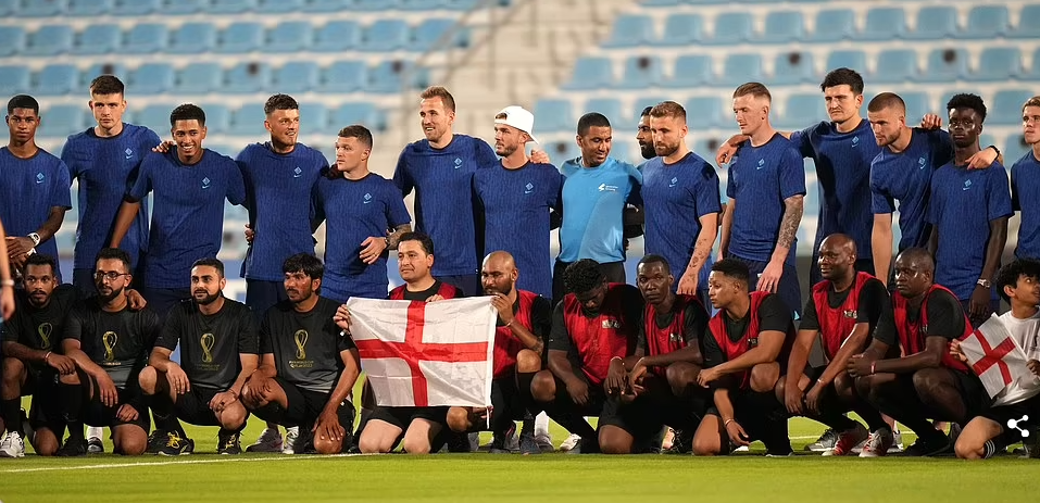 قام المنتخب الإنجليزي لكرة القدم بدعوة العمال المهاجرين الذين ساهموا ببناء ملاعب كأس العالم في قطر لحضور تدريبات الفريق وممارسة كرة القدم معهم.