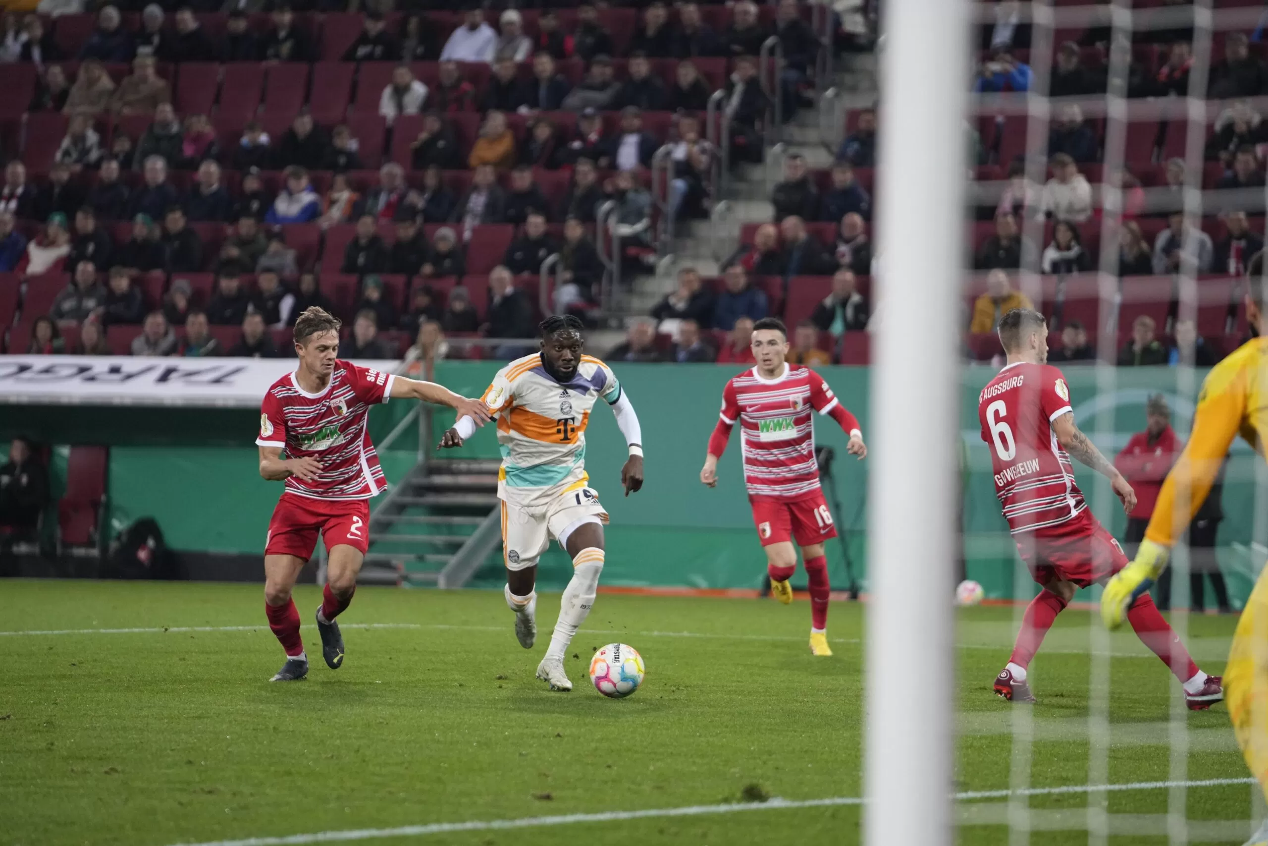أحرز ماتس بيديرسين لاعب أوجسبورج هدف فريقه الأول 9، قبل أن يسجل موتينج هدف التعديل لصالح بايرن ميونخ في الدقيقة 27.