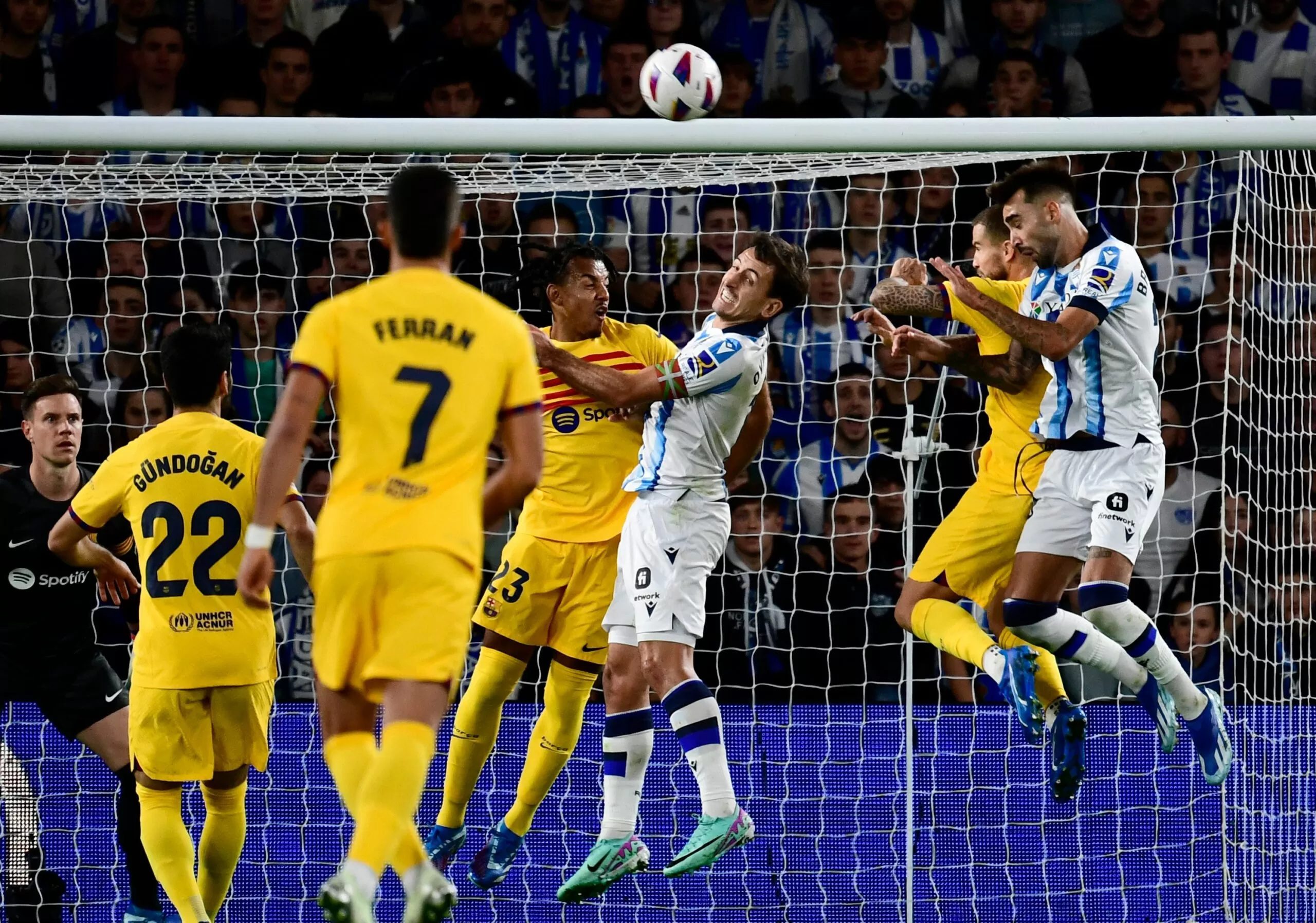 وسجل أراوخو هدف فوز النادي الكتالوني في الدقيقة الثالثة من الوقت المحتسب بدلا من الضائع من رأسية رائعة بعد تمريرة نموذجية من لاعب الوسط الألماني إيلكاي جوندوجان، ليفسد سهرة جمهور مدينة سان سيباستيان.