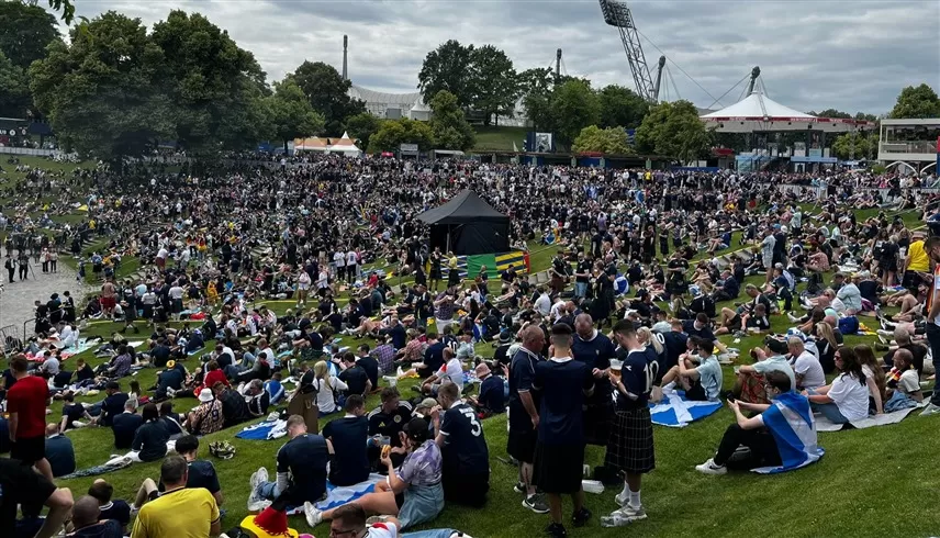 وأظهرت مقاطع فيديو تم نشرها على وسائل التواصل الاجتماعي، أمس الخميس، مشجعين إسكتلنديين في الحانات والمطاعم في مارينبلاتز، وقامت فرقة الغليون الاسكتلندية بتقديم عرض فني، كما انتشر مزمار القربة في جميع أنحاء الساحة.