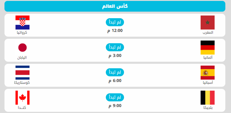 تشهد مباريات اليوم بكأس العالم 2022 التي تستضيفها قطر، وتستمر حتى الثامن عشر من ديسمبر المقبل، مواجهات متباينة، وتسعى الفرق الثمانية إلى تحقيق الفوز ليكون دافعا قويا نحو اكمال المشوار في البطولة والتأهل إلى الدور التالي.