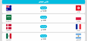 تتواصل اليوم السبت منافسات الجولة الثانية من بطولة كأس العالم 2022 التي تستضيفها قطر وتستمر حتى الثامن عشر من ديسمبر المقبل، وستشهد 4 مباريات في المجموعتين الثالثة والرابعة، حيث تلتقي منتخبات تونس مع أستراليا، وبولندا مع السعودية، وفرنسا مع الدنمارك، والأرجنتين مع المكسيك بالترتيب.