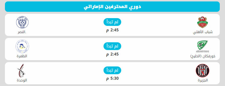 القنوات الناقلة لمباريات اليوم بالدوري الإماراتي لكرة القدم: