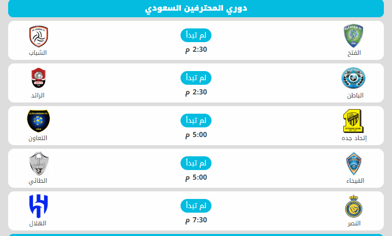 ويحل فريق الرائد ضيفًا على الباطن، ويحل التعاون ضيفًا على الاتحاد، ويلتقي الفيحاء بالطائي.