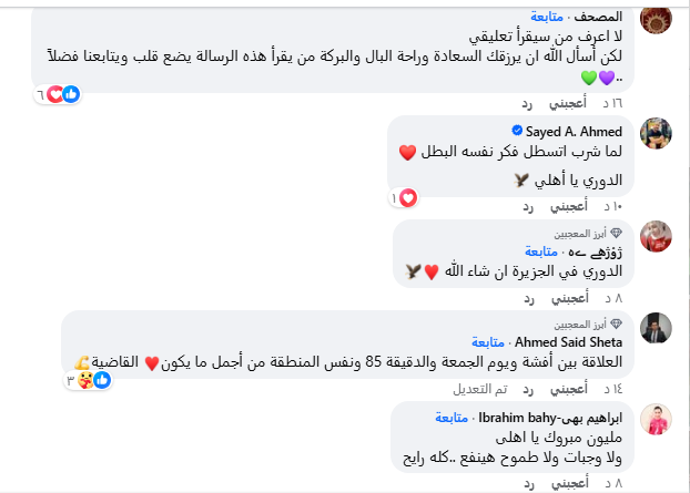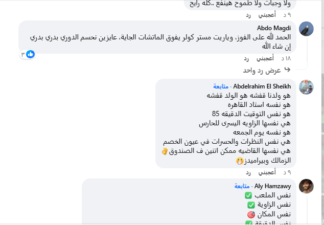 -الحمد لله على الفوز، وياريت مستر كولر يفوق الماتشات الجاية، عايزين نحسم الدوري بدري بدري إن شاء الله.