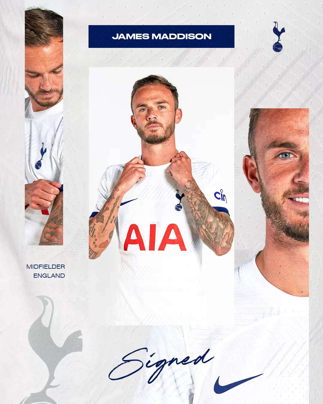أشار نادي توتنهام هوتسبير، في بيانه الرسمي، يسرنا الإعلان عن التوقيع مع جيمس ماديسون من ليستر سيتي، بعدما وقع اللاعب الإنجليزي على العقد الذي قدمه النادي، والذي بموجبه سيستمر معنا حتى عام 2028.