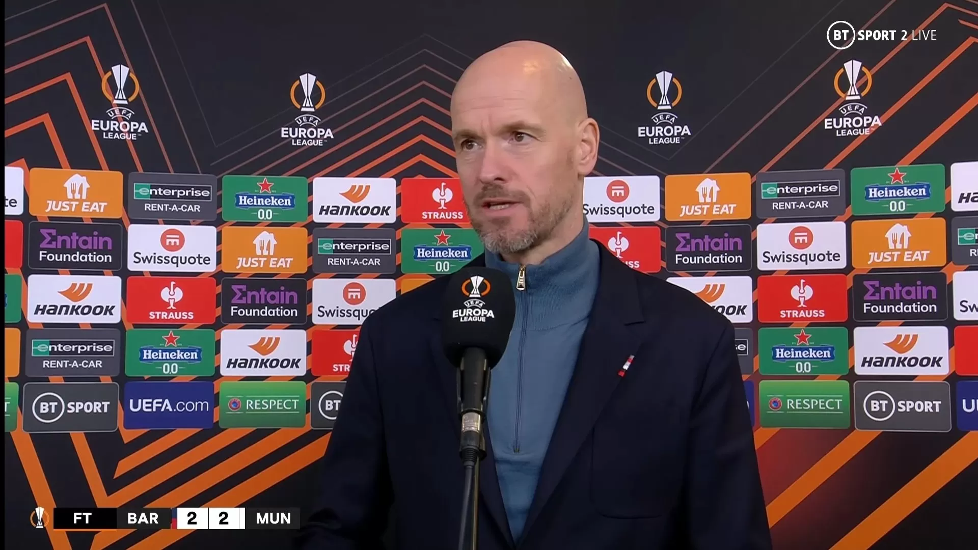 تحدث الهولندي إريك تين هاج، مدرب مانشستر يونايتد، عن تعادل فريقه أمام برشلونة، ضمن منافسات مسابقة الدوري الأوروبي، موسم 2022-2023.