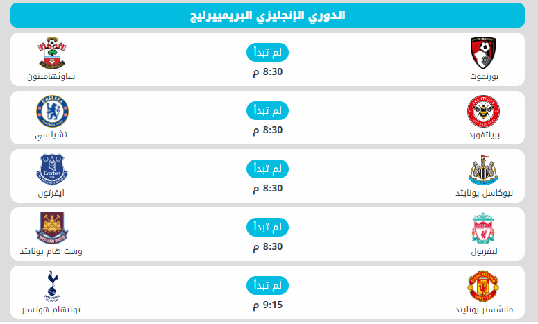 القنوات الناقلة لمباريات اليوم بالدوري الإنجليزي