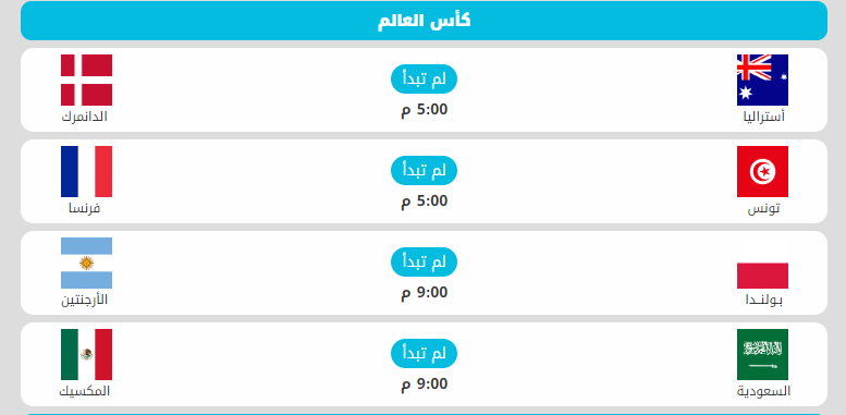 وتقام اليوم الأربعاء 4 مباريات في الجولة الثالثة والأخيرة للمجموعتين الثالثة والرابعة، حيث تلتقي استراليا مع الدنمارك، وتونس مع فرنسا، في توقيت واحد في ختام منافسات المجموعة الرابعة. في حين يلتقي منتخبا السعودية والمكسيك، وبولندا مع الأرجنتين، في الحادية عشرة مساء، بختام منافسات المجموعة الثالثة. ورغم تصدر بولندا قمة ترتيب المجموعة الثالثة برصيد 4 نقاط، إلا أن طموح التأهل للدور الثاني يراود جميع منتخبات هذه المجموعة، وعلى رأسها المنتخب السعودي الذي يحتل المركز الثاني برصيد ثلاث نقاط، ويسعى لتحقيق الفوز على المنتخب المكسيكي صاحب النقطة الواحدة كي يضمن تأهله مباشرة بغض النظر عن نتيجة المباراة الأخرى، في حين أن التعادل يدخله في حسابات نتائج المنتخبات الأخرى، في حين ينهي مشوار المكسيك في البطولة. ورغم الخسارة التي مني بها منتخب السعودية من بولندا في الجولة الماضية، إلا أن الرغبة في استثمار الدعم الكبير الذي يلقاه الفريق بعد فوزه التاريخي على الأرجنتين في الجولة الأولى يشحذ همم لاعبيه لتحقيق تأهل تاريخي بالفوز على المكسيك. وفي المباراة الثانية سيكون الصراع مشتعلا بين الأرجنتين، التي استعادت بريقها بالفوز على المكسيك في الجولة الماضية، وحصدت أول ثلاث نقاط لها في المونديال، في مواجهة المنتخب البولندي الذي نجح في حصد 4 نقاط حتى الآن واصبح قريبا من التأهل بشرط تحقيق نتيجة إيجابية في هذه المباراة.