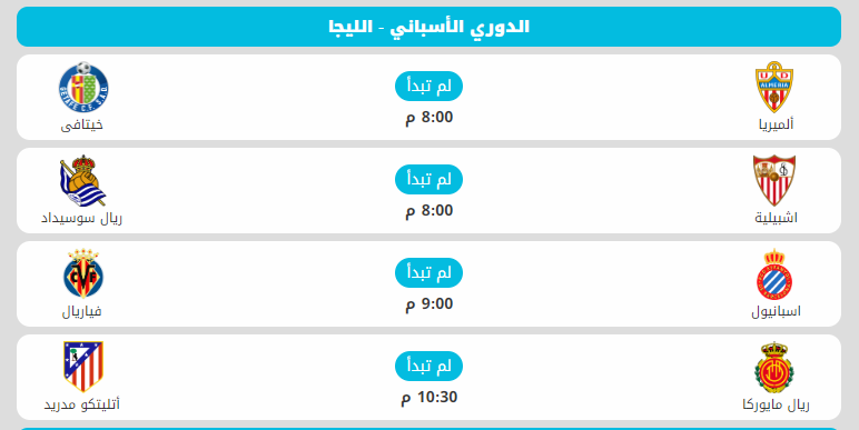 وفي باقي مباريات اليوم يستضيف إشبيلية ريال سوسيداد، ويستقبل ألميريا خيتافي، ويتواجه إسبانيول مع فياريال.