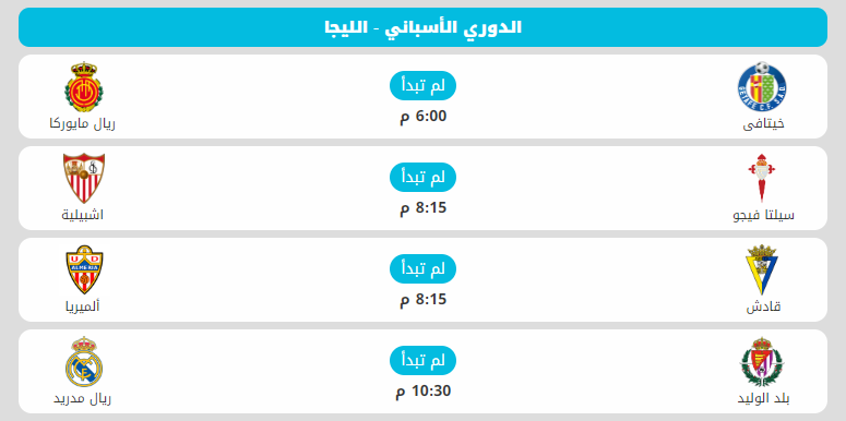 القنوات الناقلة لمباريات اليوم بالدوري الإسباني لكرة القدم