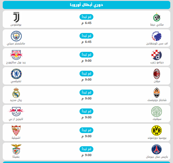 وفيما يلي جدول مباريات دوري أبطال أوروبا كاملا: