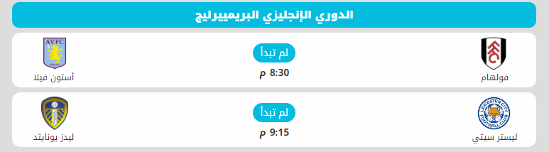 تتواصل اليوم الخميس مباريات الجولة الثانية عشرة من الدوري الإنجليزي لكرة القدم، التي تختتم منافساتها بمباراتين حيث يستضيف فولهام نظيره أستون فيلا في المباراة التي تقام بين الفريقين على ملعب كرافين كوتاج، ويسعى فولهام لإضافة 3 نقاط جديدة إلى رصيدة حيث يمتلك 12 نقطة احتل بها المركز الثاني عشر، أما أستون فيلا فيسعى لتحقيق الفوز الذي سيساعده في الابتعاد عن منطقة الخطر حيث يحتل المرتبة السابعة عشرة في جدول ترتيب المسابقة برصيد 9 نقاط، وفي المباراة الأخرى يستضيف ليستر سيتي ليدز يونايتد في المباراة التي يحتضنها ملعب كينج باور، ويحاول أصحاب الأرض رفع رصيدهم وتحقيق الفوز هربا من القاع حيث يتذيل الفريق جدول ترتيب فرق المسابقة برصيد 5نقاط، في المقابل يمتلك الضيوف دافعا كبيرا للعودة بالثلاث نقاط حيث أنه قابع في المنطقة الغير آمنة هو الآخر حيث يحتل المركز الحادي عشر برصيد 9 نقاط .