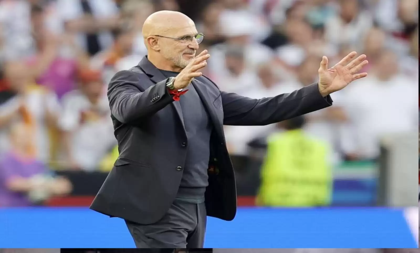 وصف مدرب إسبانيا لويس دي لافونتي فوز إسبانيا على ألمانيا بأنها ليلة تاريخية وأن تونس كروس كان يستحق بطاقة حمراء جراء تدخله القوي على بيدري. موضحا أنه فخور للغاية بتدريب لاعبي إسبانيا.