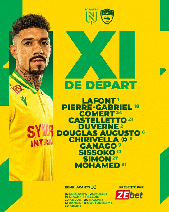 وجاء تشكيل نانت لمواجهة لوهافر في الدوري الفرنسي كالتالي:-