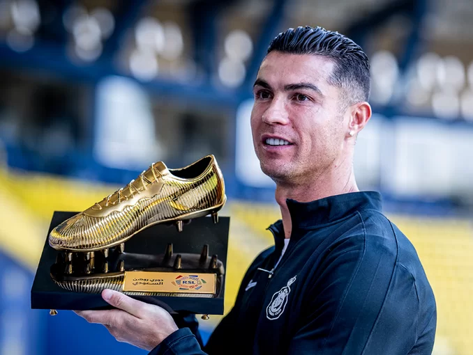 استلم النجم البرتغالي كريستيانو رونالدو جائزة هداف دوري المحترفين السعودي لموسم 2023-2024، ليؤكد النجم البرتغالي مكانته كواحد من أبرز اللاعبين في تاريخ كرة القدم، بعدما فعلها مراراً وتكراراً في مسابقات مختلفة، حيث أنه اللاعب الوحيد الذي توج بالحذاء الذهبي في 4 دوريات مختلفة.