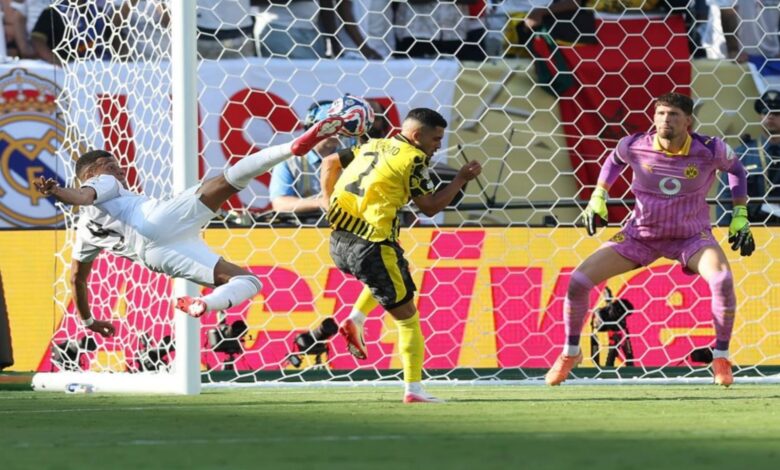 حصل ريال مدريد الإسباني على بطاقة التأهل الأخيرة إلى نصف نهائي بطولة كأس العالم للأندية 2025، بعدما حقق فوزًا مثيرًا على بوروسيا دورتموند الألماني بنتيجة 3-2، في اللقاء الذي جمع بينهما مساء السبت على ملعب “ميتلايف” بالولايات المتحدة الأمريكية.