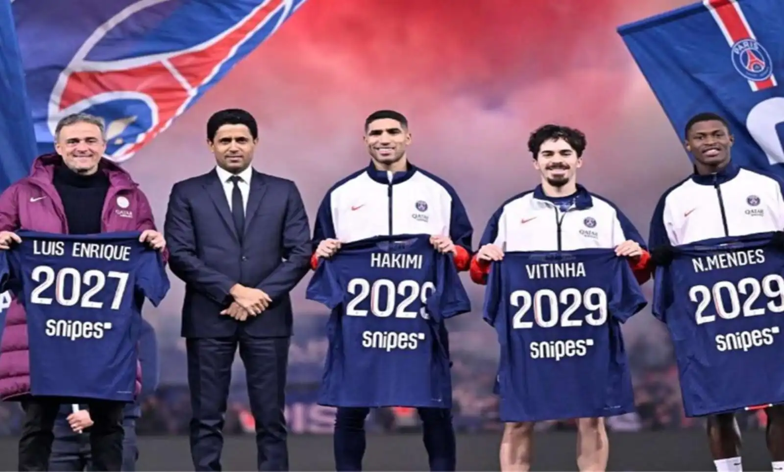 وبحسب البيان الرسمي للنادي، تم تمديد عقد لويس إنريكي حتى 30 يونيو 2027، بينما وقع الثلاثي أشرف حكيمي، نونو مينديز، وفيتينها على عقود جديدة تستمر حتى يونيو 2029. كما جدد يورام زاجي عقده حتى يونيو 2028، في حين وقع إبراهيم مبابي ونوفل الحناش على عقودهما الاحترافية الأولى حتى يونيو 2027.