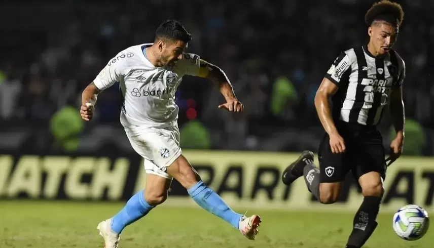 سجل النجم الأوروجواياني لويس سواريز ثلاثة أهداف «هاتريك»، قاد بها جريميو إلى فوز مثير على مضيفه بوتافوجو بأربعة أهاف مقابل ثلاثة، في الجولة الثالثة والثلاثين من الدوري البرازيلي لكرة القدم.