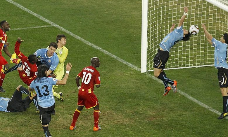 وكان سواريز قد منع هدفا بيديه في مباراة غانا في ربع نهائي كأس العالم 2010 في الدقائق الأخيرة وتعرض للبطاقة الحمراء.
