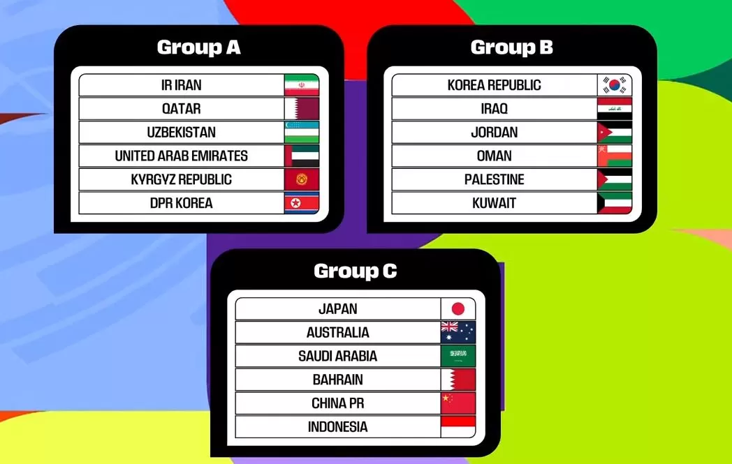 أما المنتخب السعودي فقط حل في المجموعة الثالثة إلى جانب منتخبات اليابان وأستراليا والبحرين والصين وإندونيسيا، وسيلعب منتخبا قطر والإمارات في المجموعة الأولى إلى جانب إيران وأوزبكستان وقيرغزستان وكوريا الشمالية.