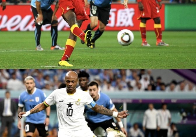 وأضاع منتخب البلاك ستارز، ركلتي جزاء ضد أوروجواي، الأولى في ربع نهائي نسخة 2010 بجنوب إفريقيا، والثانية بالنسخة الحالية 2022 بجولة دور المجموعات.