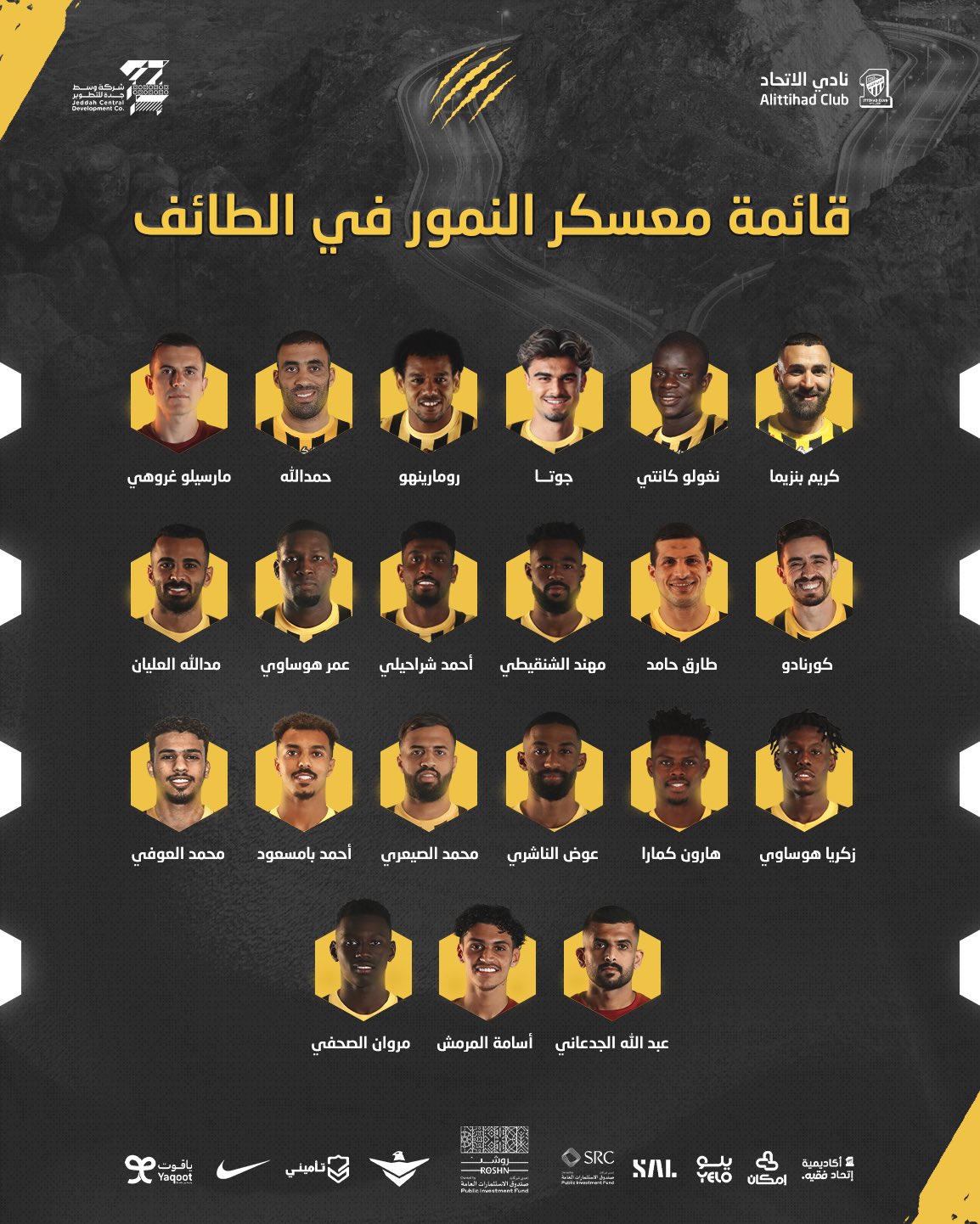 وكانت قد شهدت قائمة الاتحاد السعودي في المعسكر الاعدادي المعلنة، تواجد النجم الفرنسي كريم بنزيما المنضم حديثًا من ريال مدريد، ووكذلك مواطنه نجولو كانتي لاعب تشيلسي السابق، فيما يغيب أحمد حجازي بسبب إصابته بقطع في الرباط الصليبي.