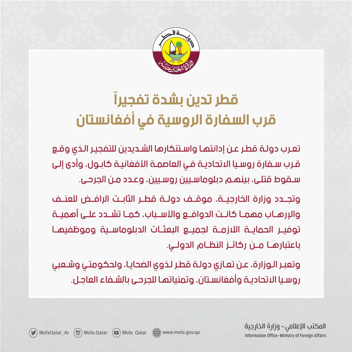 الدوحة في 13 أبريل /أ ش أ/ أدانت دولة قطر، بشدة، الهجمات التي استهدفت مخيمي زمزم وأبوشوك للنازحين في إقليم دارفور بالسودان، وأدت إلى سقوط قتلى وجرحى، وعدتها انتهاكا سافرا للقانون الإنساني الدولي. وأكدت قطر – في بيان لوزارة خارجيتها أذاعته وكالة