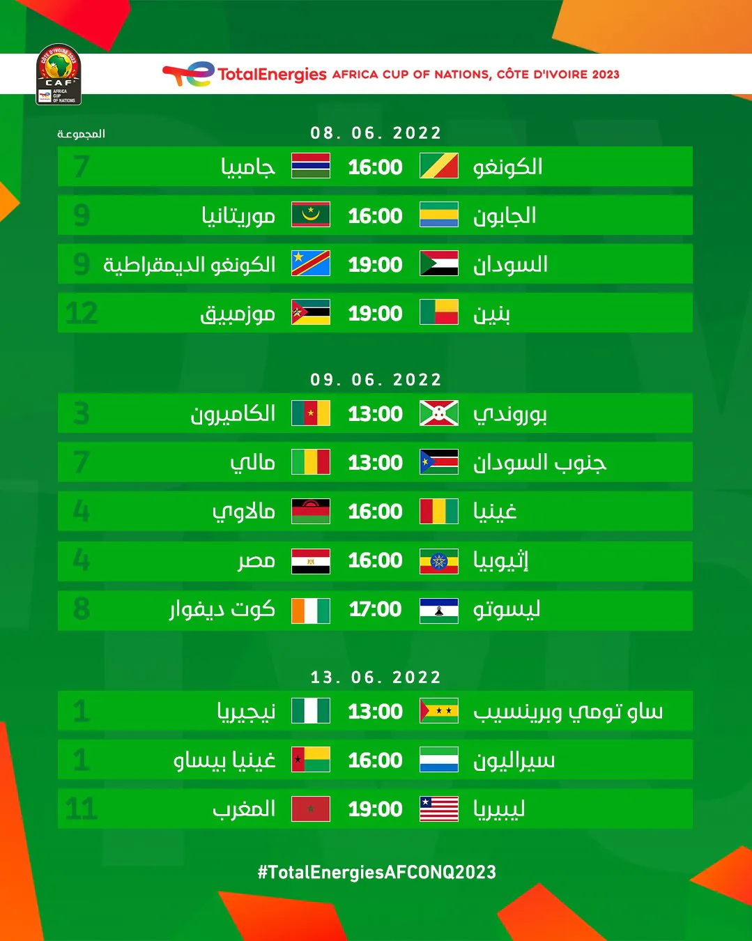 القاهرة في 20 مارس /أ ش أ/ أعلن الاتحاد الأفريقي لكرة القدم "كاف"، مواعيد مباريات منتخب مصر للناشئين، في بطولة كأس الأمم الأفريقية تحت 17 عامًا فى نسختها رقم 15 المقرر إقامتها بالمغرب خلال الفترة من 30 مارس الجاري وحتى 19 أبريل المقبل. وستحتضن