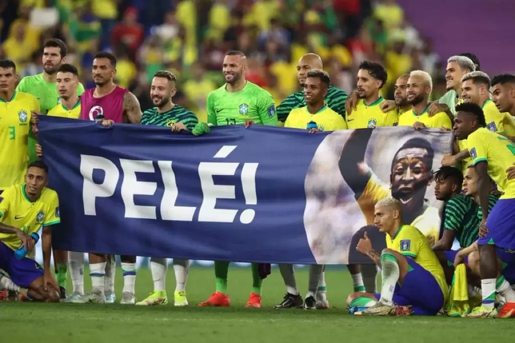 وحمل لاعبو البرازيل، لافتة كبيرة كتب عليها بيليه وعليها صورته، في رسالة دعم الأسطورة البرازيلية، متمنين له الشفاء العاجل.