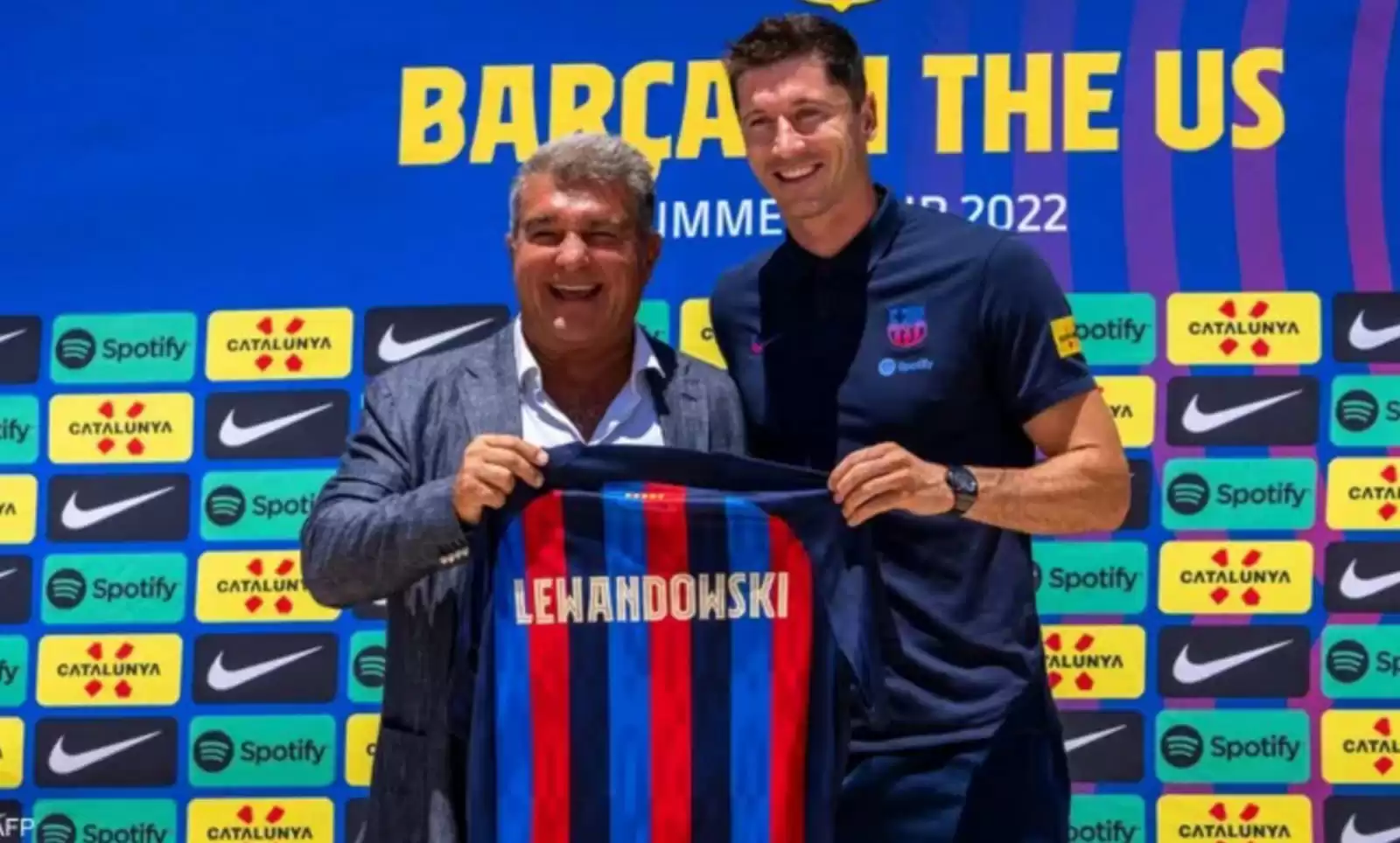 وقدم نادي برشلونة الإسباني لاعبه الجديد روبرت ليفاندوفسكي رسميا، لجماهير الكتالوني، في الصفقة التي صنفت بأفضل صفقات الدوري الإسباني خلال الميركاتو الحالي.